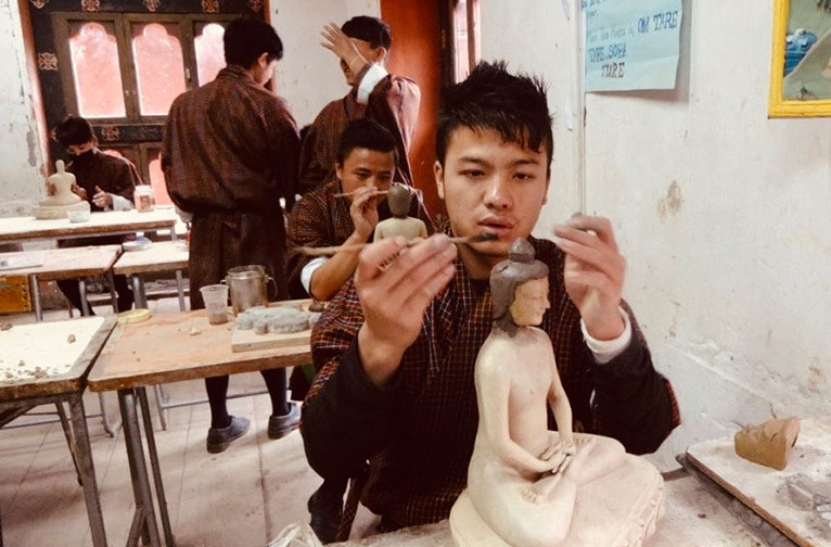 La découverte de la richesse des traditions artistiques et artisanales bhoutanaises peut être une expérience amusante et éclairante, comme vous le découvrirez à l'école d'art traditionnel de Choki (CTAS). L'établissement a été fondé en 1999 dans le but de s'occuper des enfants défavorisés de tous les milieux et de leur apporter une éducation. C'est Dasho Choki Dorji, un artiste chevronné, dont l'intérêt et l'amour pour la profession ainsi que le zèle à maintenir en vie les zorig chusum (13 arts et métiers) ont inspiré sa fondation. Ceux-ci reflètent en effet des siècles de pratiques culturelles. En fait, de nombreux Bhoutanais voient leur identité et leur histoire se refléter dans cet artisanat.