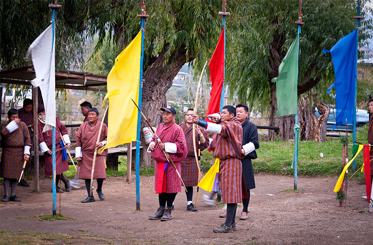 Les mythes de ce type abondent dans les plis de ce royaume montagneux éloigné. Les voyageurs curieux d'aujourd'hui peuvent s'en imprégner et les tisser dans les souvenirs non comestibles des lieux qu'ils visitent. Les instants de gloire colorent votre voyage au fil des dzongs. Imprégnés d'histoire et de nuances monastiques, les légendaires dzongs du Bhoutan servent de fabuleux décors aux moines qui dansent et aux foules grouillantes de citoyens et de touristes lors des festivals annuels qui se déroulent dans leurs immenses cours pavées de pierre. Ne manquez pas la fabuleuse culture du festival de Thimphu. Plus tard, essayez-vous au tir à l'arc, l'ancien art martial des Bhoutanais.