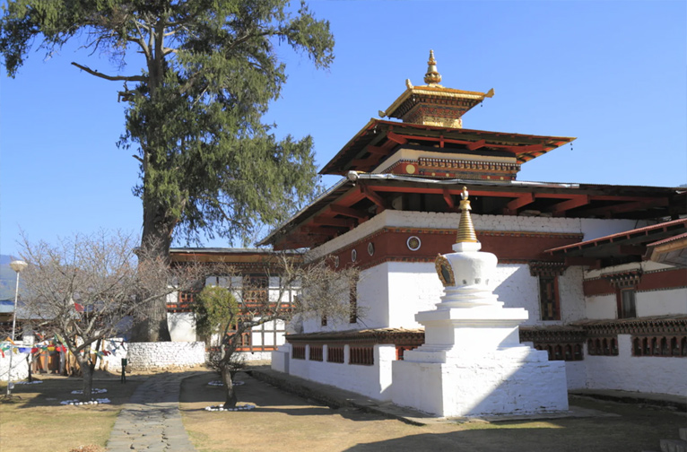 Faites tourner les moulins à prières et apaisez votre monde dans le temple bouddhiste Kyichu Lhakhang, datant du VIIe siècle, ou "temple bleu", près du district de Paro. Imprégnez-vous des lignes traditionnelles de l'architecture des temples bhoutanais et de l'atmosphère apaisante en contemplant les magnifiques peintures murales, les statues réfléchissantes et l'environnement immaculé.