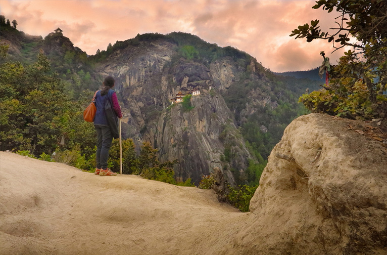 Les espaces spirituels de Paro offrent aux visiteurs certaines des expériences les plus enrichissantes pour ceux qui recherchent des moments de réflexion. Une expérience à ne pas manquer est la randonnée raide jusqu'au monastère de Taktsang, perché sur une falaise abrupte à 3 000 pieds au-dessus de la vallée. Arrêtez-vous plusieurs fois en chemin pour savourer cette expérience unique. Imprégnez-vous des paysages et remplissez vos poumons des brises de montagne non polluées. Faites le plein au petit café qui se trouve sur le chemin. Cet ancien monastère, également connu sous le nom de Nid de tigre, est aussi l'un des sites religieux les plus vénérés du pays. La légende veut que le fondateur du bouddhisme tibétain, Guru Padmasambhava, se soit envolé sur le dos d'une tigresse jusqu'à cette retraite de montagne pour passer trois mois à méditer dans une grotte au-dessus de laquelle se trouve aujourd'hui le monastère.