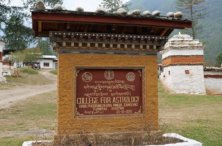Le tourisme astrologique suscitant de plus en plus d'intérêt au sein de la communauté internationale des voyageurs, il convient de visiter un lieu qui revêt une grande importance pour la royauté bhoutanaise et la population locale. Il s'agit du Collège royal d'astrologie, situé dans l'ancien monastère de Pangri Zampa, à environ 8 km de la capitale Thimphu. Les astrologues du Bhoutan y sont formés par les moines bouddhistes avant de mettre leurs compétences au service des besoins astrologiques des dzongs, des monastères et des temples disséminés dans tout le pays.