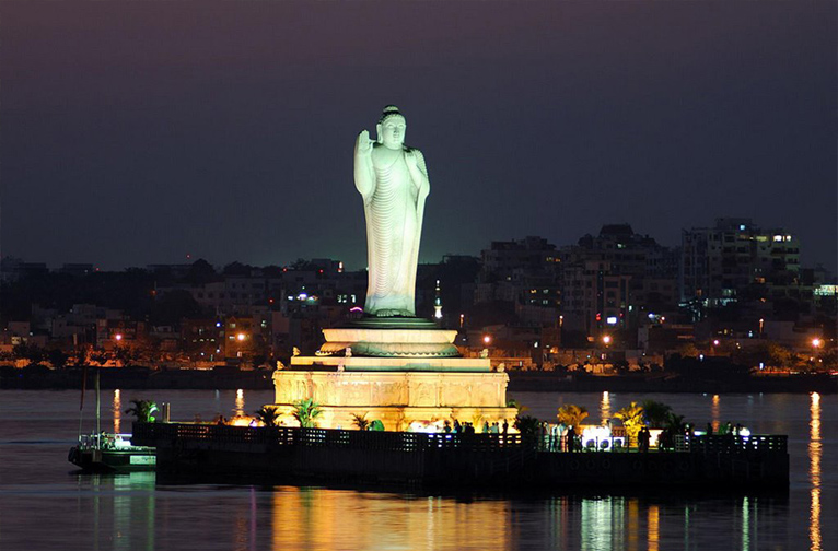 Au cœur de Hussaina Sagar se trouve une statue massive du Bouddha debout. Éclairée la nuit, elle constitue un spectacle évocateur qui marque les eaux sombres du lac. Après une journée trépidante de visites et un spectacle son et lumière au célèbre fort de Golconda, profitez d'un dîner gastronomique et d'un service impeccable sur le bateau de croisière qui navigue sur le lac. Près du lac se trouvent les Lumbini Gardens, un espace paysager reposant qui propose un spectacle laser, une fontaine musicale et des promenades en bateau sur Hussain Sagar. Une sortie populaire pour les citoyens est Eat Street, où l'on peut déguster un fabuleux éventail de plats proposés par les vendeurs, tout en admirant la sérénité de Hussain Sagar. L'art de la rue Necklace offre une fenêtre intéressante sur les activités créatives contemporaines d'Hyderabad.