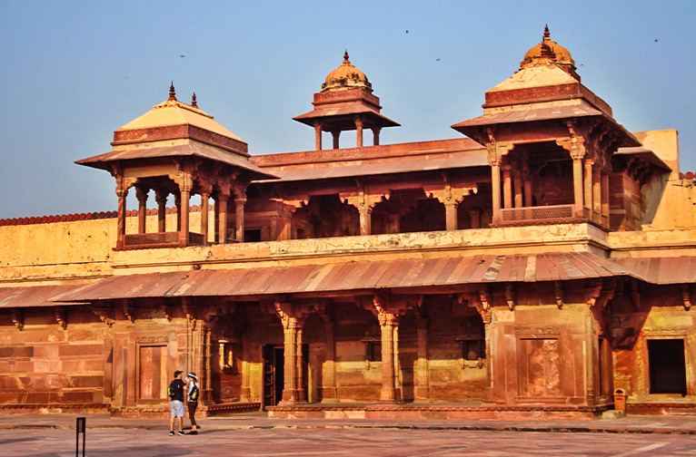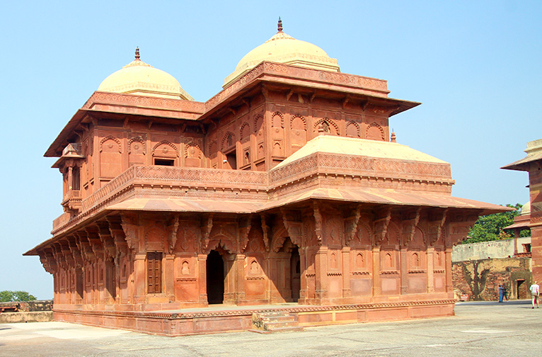 Parmi les structures incontournables qui méritent d'être explorées, citons le Panch Mahal, un édifice à cinq étages. Situé près des quartiers de Zenana, il servait probablement de lieu de divertissement et de détente pour les dames du harem. La maison de la sultane turque, située à l'angle d'Anup Talao, près du Pachisi Board, est entièrement construite en grès rouge. Datée de 1565 à 1605, elle est un bel exemple de l'architecture moghole primitive. L'intérieur et l'extérieur de la maison sont densément sculptés. Les sculptures du plafond reflètent les influences de l'Asie centrale. La maison du Rajah Birbal, commandée en 1571, présente de fortes influences hindoues dans l'ensemble de sa conception. Birbal était le seul des légendaires "neuf joyaux" de la cour d'Akbar à vivre dans le complexe, à proximité de l'empereur.