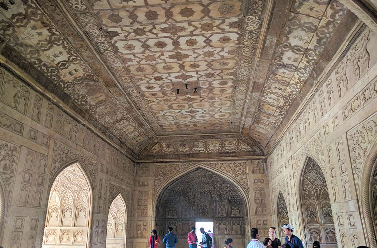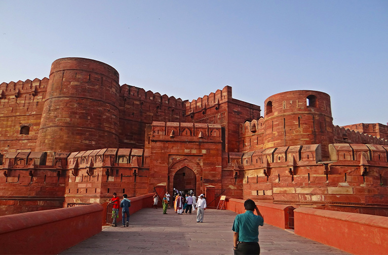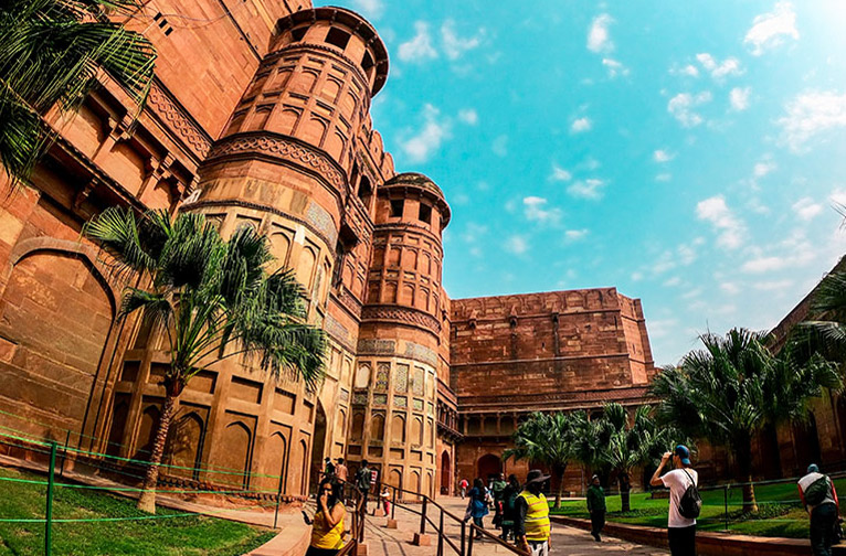 Aujourd'hui classé au patrimoine mondial de l'UNESCO, le fort d'Agra était à la fois une base militaire et une résidence pour les membres de la famille royale. Située sur la rive droite de la rivière Yamuna, cette citadelle autonome et intimidante était le siège du pouvoir du gouvernement moghol à Agra. On n'y entrait que par la porte Amar Singh, orientée vers le sud, et par la porte de Delhi, orientée vers l'ouest.