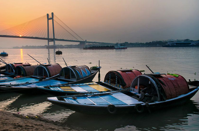 En descendant le fleuve, le bateau passe devant l'ancienne colonie hollandaise de Chinsurah et s'arrête à Chandernagore. Découvrez avec ravissement cette enclave fluviale détenue par les Français au Bengale jusqu'en 1950. L'église du 18e siècle constitue l'une des principales attractions de la ville. Avant qu'il ne déménage à Barrackpore, le palais Dupleix servait de résidence au gouverneur général de l'Inde française. En parcourant le quartier de Cantt, vous passerez devant la Semaphore Tower, la Government House, le Temple of Fame et la Flagstaff House. En fonction de l'état des marées sur le fleuve, vous ferez une croisière sous l'emblématique pont Howrah pour rejoindre le centre de Kolkata.