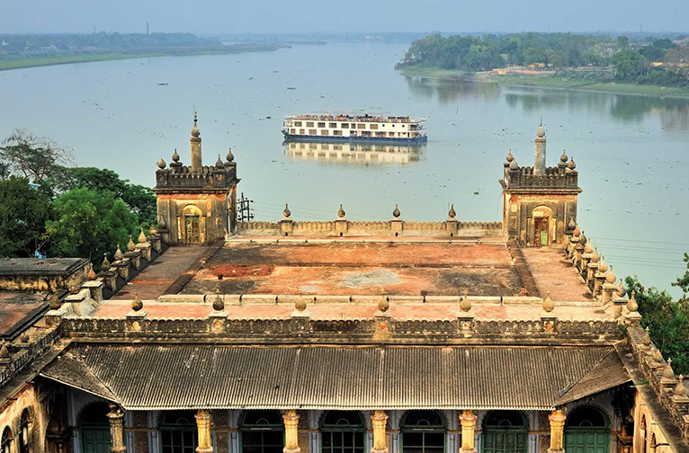 En continuant à naviguer vers l'aval, vous ferez une autre belle excursion hors-bord au Khushbagh, un jardin serein de style moghol où le dernier nawab du Bengale indépendant, Siraj-ud-Daulah, a été enterré avec sa famille. Le bateau vous emmène ensuite en aval de l'ancien cantonnement britannique de Berhampur. Dans un lieu rural proche, le bateau fait une pause importante dans son voyage, où vous vous attarderez sur les résultats de la bataille historique de Plassey de 1757, au cours de laquelle Robert Clive, le commandant en chef de l'Inde britannique, a battu Siraj-ud-Daulah. Cet événement historique a changé le cours de l'histoire de l'Inde. Une promenade à travers les champs vous mènera à l'obélisque commémoratif de cet événement mémorable.