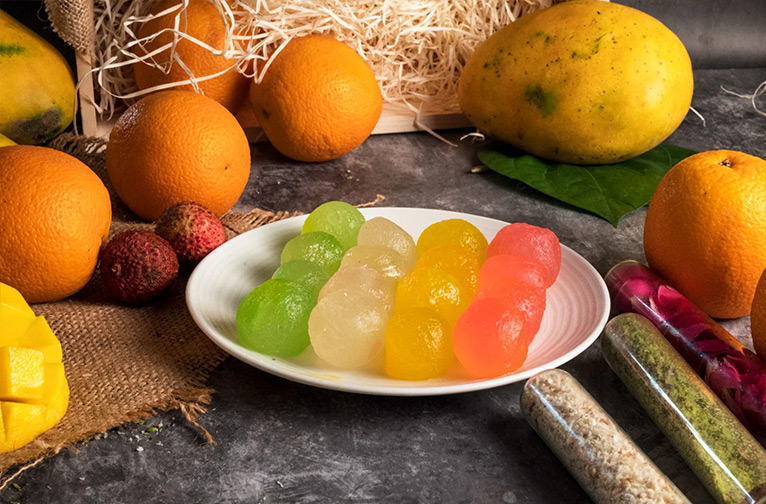 Pour les amateurs de sucreries, l'incontournable petha, un délicieux mithai à base de courge cendrée qui se décline en différentes saveurs et teintes, est une offre exceptionnelle. Les options en vente sont le santra (orange), le kesar, l'angoori et le petha à la noix de coco.