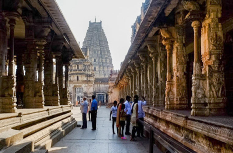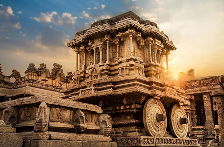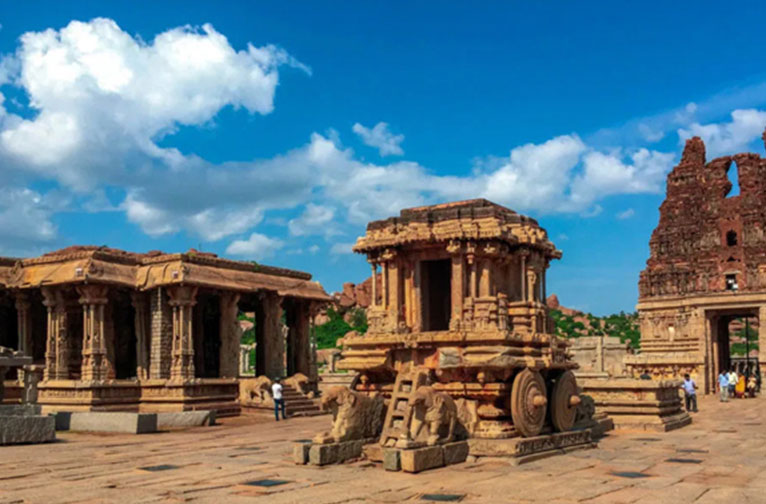 Comme les puissants sont tombés ! Seule une coquille muette de cet ancien grand empire réside dans les ruines atmosphériques de son ancien bastion, Hampi. L'alliance de quatre sultans du sud contre l'empire et les conséquences qui s'ensuivirent sonnèrent le glas de l'empire. Lorsque la confédération musulmane du Deccan a finalement mis Hampi en déroute en 1565, la ville a été dévastée et sa population a fui. En vous promenant dans les ruines, qui s'étendent sur une circonférence de 100 km, vous sentirez l'empreinte de son passé légendaire à chaque fois que vous rencontrerez ses monuments. Les voyageurs de son glorieux passé ont raconté la splendeur de ses merveilles architecturales représentées dans les palais et les temples, la variété et la qualité étonnantes des marchandises disponibles dans les bazars et le faste des festivals tels que Mahanavami.