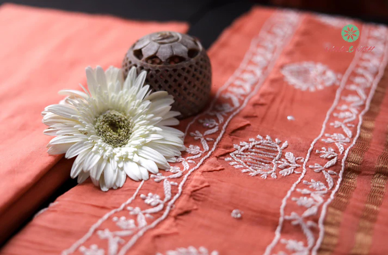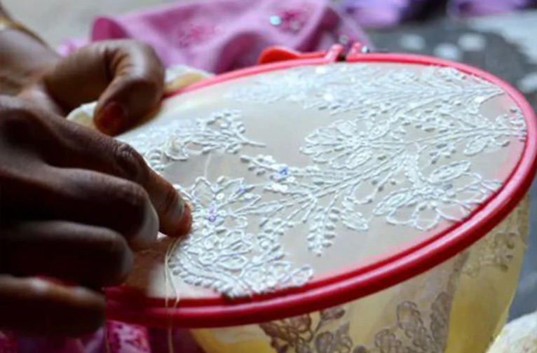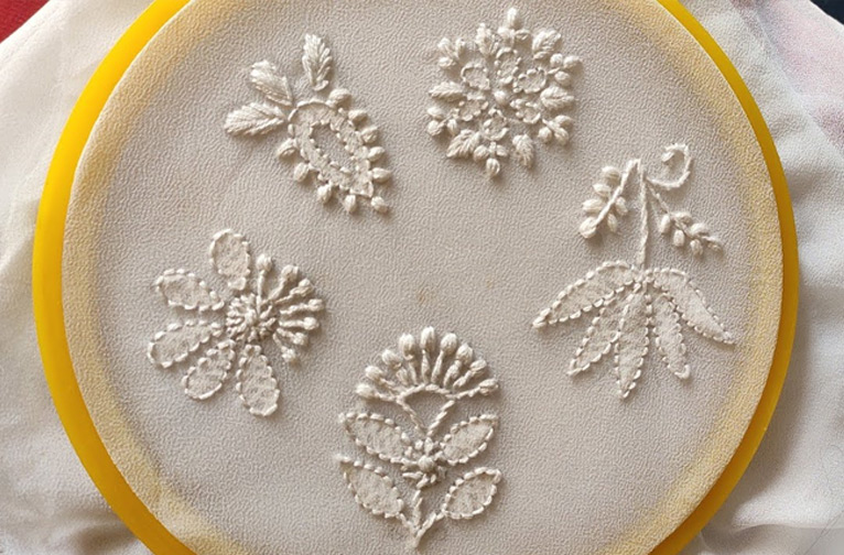 Le chikankari, qui demande beaucoup de travail, a été élevé au rang d'art par des mains expertes qui ont un lien intime avec la broderie de motifs floraux sur des mousselines fines comme de la soie ou d'autres tissus légers.