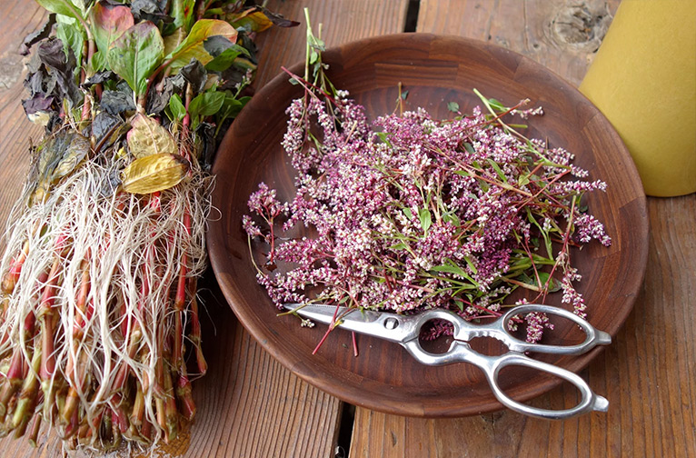 L'histoire ne s'arrête pas là. Ce n'est que lorsque l'indican est oxydé qu'il devient de l'indigotine (le composant colorant de la poudre d'indigo), qui est le véritable pigment colorant. L'indigotine est insoluble dans l'eau ; une technique de teinture spéciale permet de la lier au tissu. L'extrait est disponible sous forme de morceaux ou de copeaux (qui doivent être broyés avant utilisation) ou sous forme de poudre fine telle qu'elle est utilisée dans les teintures capillaires. L'indigo est également disponible sous forme de feuilles ; une fois les feuilles récoltées, elles sont séchées et réduites en poudre.