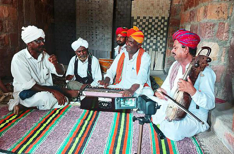 Les instruments de musique les plus populaires sont le rawanhattha, l'algoza, le morchang, le sarangi, le kamayacha, le khartal, le poongi, le bankia, le nagara et les dhols, damrus et daf. Les bardes musicaux sont issus de communautés telles que les Manganiyars et les Langas, les Kanjars, les Banjaras et les Dholies, ainsi que les Mirasis et les Jogis de Mewat. Les principales figures de proue de ces traditions sont les Manganiyars et les Langas, qui ont acquis une certaine notoriété dans les forums de musique mondiale.