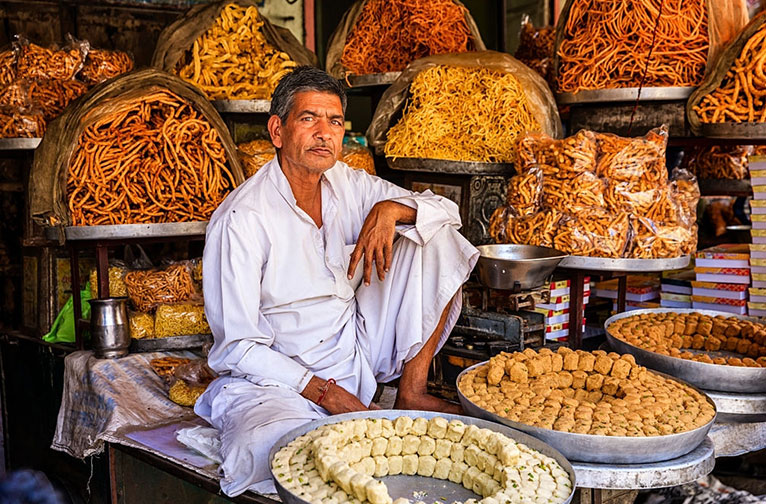 La tradition se perpétue dans le vieux quartier de la ville rose lorsqu'il s'agit de mettre en valeur ses extraordinaires spécialités culinaires. L'immense variété d'en-cas, de plats salés et de sucreries témoigne d'une longue et riche histoire avec les gourmands. Lorsque vous vous promenez dans cette partie de Jaipur, vous devez vous rendre à Chatorio Ki Gali, qui est célèbre dans tout le pays pour son nom et sa cuisine de rue. Ces restaurants non touristiques doivent être excellents, car les habitants qui s'y pressent ont du mal à y placer une jambe !