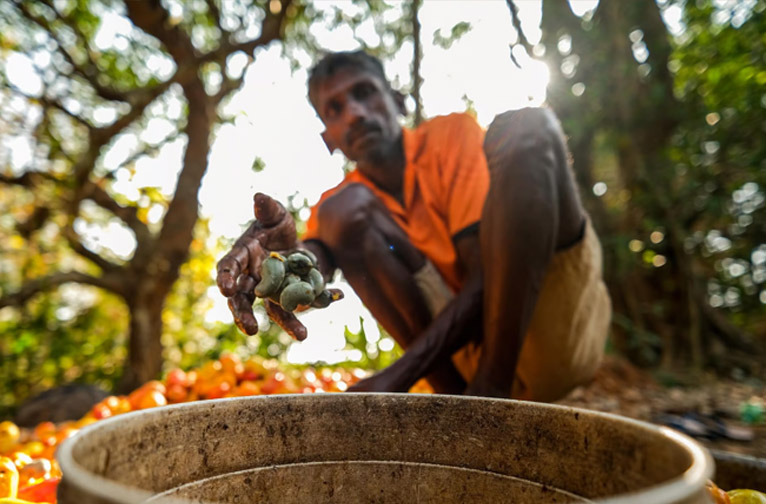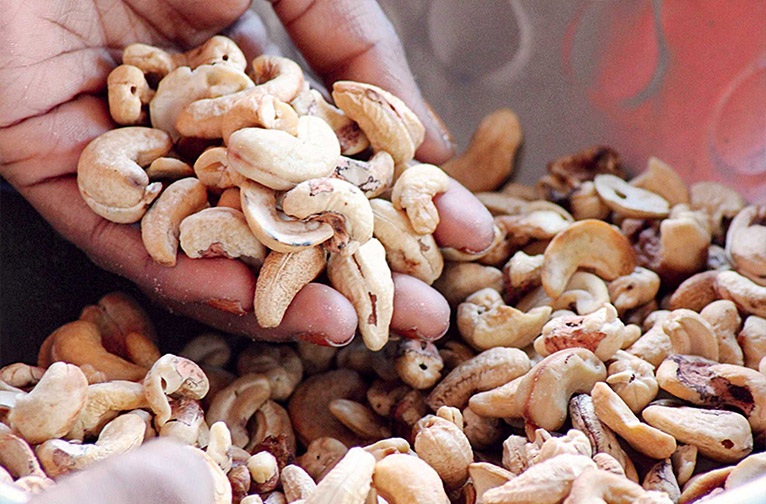 La noix de cajou est une noix mystérieuse. Si vous observez attentivement un anacardier, la noix en forme de rein s'accroche au dessous de la pomme de cajou, qui ressemble à un fruit mais qui est la tige élargie de l'anacardier. Aussi étrange que cela puisse paraître, compte tenu de ses antécédents portugais, l'Inde a été le premier pays à expédier des noix de cajou sur les marchés mondiaux et a également été le pionnier de la transformation de la noix de cajou en tant qu'industrie. Sous la direction compétente de l'Inde, les noix de cajou peuvent être séchées au soleil, grillées au tambour, grillées dans un bain d'huile et cuites à la vapeur pour obtenir différents résultats finaux. La transformation est la clé qui permet de tirer de cette noix exotique toute une série de trésors de plaisir. À Goa, la fabrication du feni est l'une des plus appréciées.
