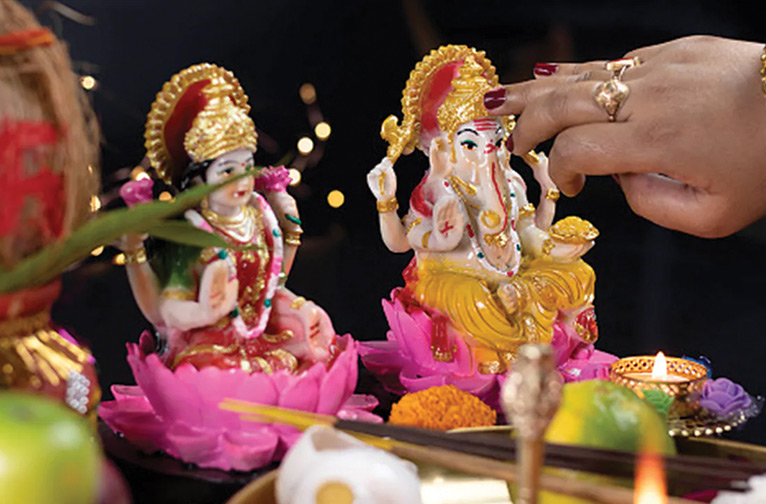 Diwali, qui marque le nouvel an hindou, est centré sur l'adoration de Lakshmi, la déesse de la richesse, afin d'apporter prospérité et bonheur à tous au cours de l'année à venir.