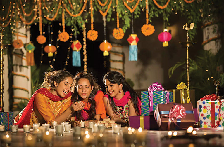 Diwali marque également le Nouvel An hindou, synonyme de nouveaux départs passionnants, considérés comme de très bon augure. Les travailleurs sont en congé, les enfants sont en vacances et les réunions de famille, dans le cadre de l'esprit général de don et de partage, accueillent même des invités qui ne font pas partie de la famille élargie ; culturellement, on est loin des traditions occidentales, contrairement à l'Occident où les célébrations annuelles de Noël et de Thanksgiving sont en grande partie une affaire de famille. C'est l'une des expériences les plus exaltantes pour un visiteur étranger que de se retrouver dans les bras d'une famille locale pour partager la bonhomie et l'esprit de générosité qui marquent la fête.