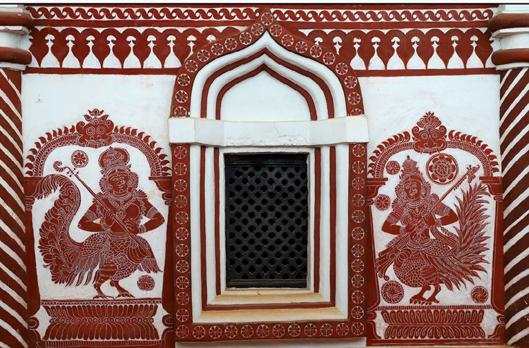 Suivez le chemin de l'art à Goa et faites des découvertes vraiment uniques. Les fabuleuses églises de Goa, ses temples, ses édifices monumentaux ou ses galeries d'art recèlent une multitude d'œuvres d'art qui sont autant de fenêtres sur le passé et le présent de Goa. Cette forme d'art consiste à appliquer de la terre rouge ou noire sur un mur, puis à gratter le dessin et à le remplir d'enduit à la chaux blanc. De beaux exemples de ce travail sont visibles à la chapelle de Notre-Dame du Mont et au palais archiépiscopal. L'art ancien du kaavi, utilisé sur les murs des temples et des maisons, consiste à utiliser une pâte de terre rouge et de charbon de bois pour remplir un dessin gravé. Chérissez l'héritage de ces magnifiques formes d'art qui ont à peine survécu pour raconter leur histoire aujourd'hui.