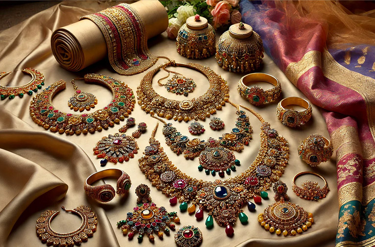Pour compléter les riches broderies de ce monde étincelant, Kinari Bazaar compte également un grand nombre de bijoutiers qui vendent de superbes ensembles de jadau, des pendentifs, des bagues, des bracelets et des tours de cou.
