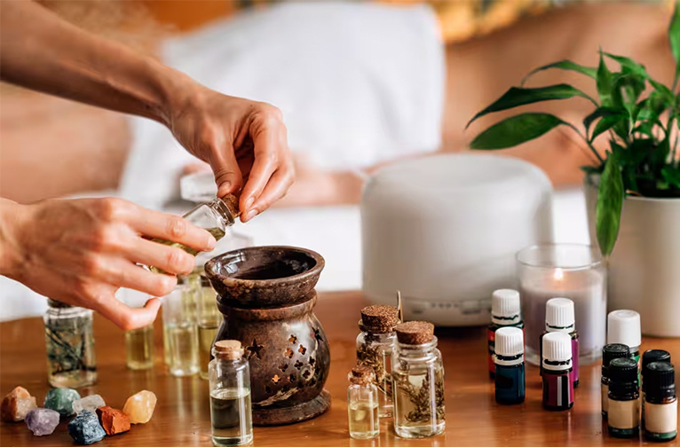 Les arômes naturels étaient étroitement liés à l'élévation spirituelle et à la purification de l'âme. Les huiles parfumées utilisées pour masser le corps (abhyanga), qui permettaient à la peau de rester soyeuse, saine et revigorée, l'utsadanam (frottement de la peau avec des poudres parfumées, etc.) et le gommage (udgarshanam) ne sont que quelques-unes des procédures de protection de la santé et d'élimination des maladies.