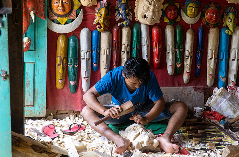 Architectes et artisans par tradition, les Newars ont témoigné de leur savoir-faire et de leur culture de la sculpture sur bois dans les temples et les sanctuaires des places Durbar de Katmandou, Patan (Lalitpur) et Bhaktapur depuis le XIIe siècle. Admirez l'habileté des artisans au Palais des 55 fenêtres et à la Porte d'or de la place Durbar de Bhaktapur. Explorer l'étonnante culture ancienne de Bhaktapur et ses formes d'art et d'artisanat anciennes, c'est comme se promener dans un musée vivant. Passez du temps avec un shilpkar traditionnel pour découvrir l'étonnante culture de l'artisanat du bois Newari. À part la sculpture sur bois, il n'y a aucun domaine de l'art et de l'artisanat que les Newars ne connaissent pas : la peinture, la sculpture, la fabrication de poteries, la production de papier et la métallurgie. À Katmandou, une autre aventure culturelle vous attend au studio du maître sculpteur népalais de quatrième génération Jaya Raj Bajracharya, qui vous apprendra l'art de la sculpture sur pierre.