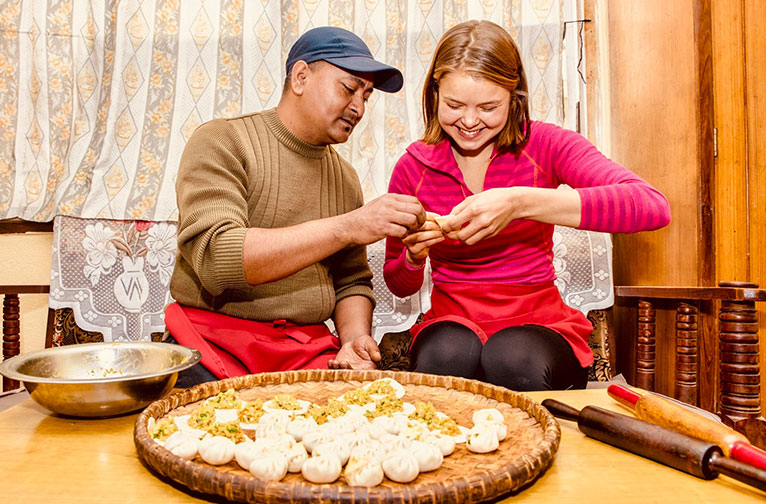 D'accord, vous avez peut-être lu beaucoup de choses sur le dal-bhaat, le chai et les samosas. Mais la cuisine népalaise est bien plus vaste et variée. Et vous devez vous laisser tenter par cette magnifique gamme de plats pendant votre séjour à Katmandou. De l'authentique cuisine newari aux plats inspirés des traditions indiennes et chinoises, on en trouve dans toutes les rues. Il y a fort à parier que votre palais et vos tripes en redemanderont encore et encore. Si votre passion pour la nourriture s'étend jusqu'à la cuisine, n'oubliez pas d'apprendre quelques recettes. Nous vous conseillons d'apprendre en mangeant.