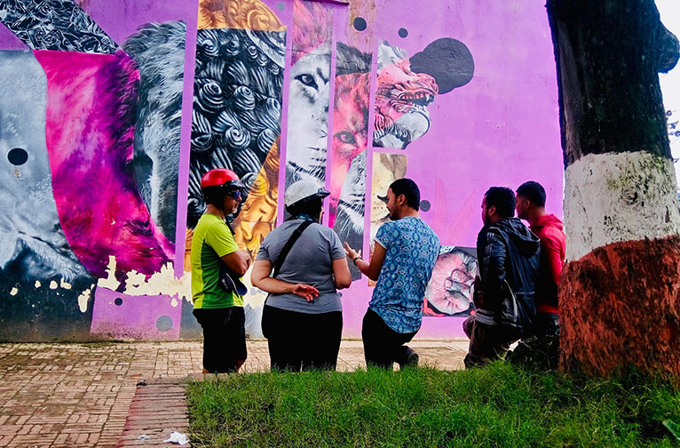La scène artistique de Katmandou est plus branchée que vous ne l'imaginez. Si vous aimez l'art de rue, Katmandou est votre lieu de prédilection. De nombreux artistes talentueux ont orné les murs de la ville avec des projets approuvés par le gouvernement et d'autres. Dieux, déesses, animaux, nature, angoisse, joie et toutes les autres émotions sont exprimés dans un style qui défie les dimensions et avec des couleurs vives.