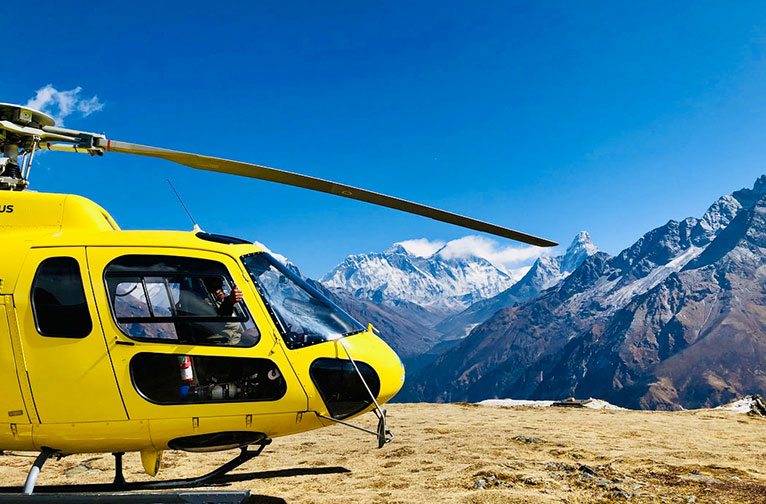 Vous êtes à Katmandou. Si près du majestueux sommet - le mont Everest. Comment pouvez-vous résister à l'attrait d'au moins observer sa grandeur ? Vous ne pouvez pas et nous disons que vous n'avez pas besoin de le faire. Un court trajet en hélicoptère vous emmènera au camp de base. Là, vous pourrez savourer un petit-déjeuner copieux sans même détourner votre regard du pic épique. Prenez votre temps et savourez cette vision majestueuse.