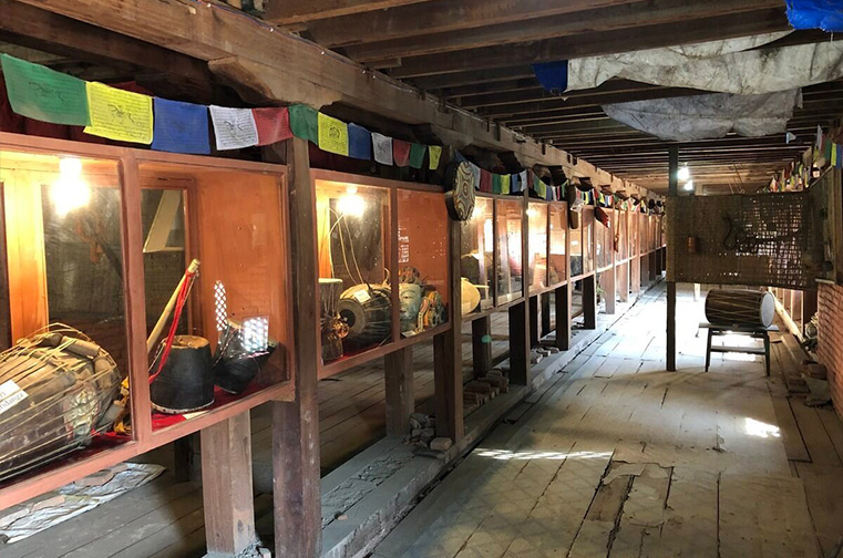 Les visiteurs ont de nombreuses raisons de s'attarder dans ce qui est considéré comme l'un des plus grands temples de Katmandou. Le collectionneur Ram Prasad Kadel s'est plongé dans les traditions musicales ethniques du Népal, qui ont donné naissance à plus de 1 300 modèles uniques d'instruments de musique produits par les quelque 100 communautés ethniques du pays. Le musée qu'il a créé ici en 2002 présente 650 instruments de musique, qui sont des originaux ou des copies de ceux qui étaient encore utilisés dans les 77 districts du Népal qu'il a visités. C'était sa façon de poursuivre sa passion de manière durable, tout en soutenant et en aidant à maintenir en vie ces traditions vivantes au Népal. Kadel organise souvent des concerts publics au cours desquels des enregistrements des interprètes sont également conservés. À l'entrée, les visiteurs découvriront un sarangi massif, l'instrument à cordes traditionnel népalais emblématique. Il s'agirait du plus grand sarangi au monde.