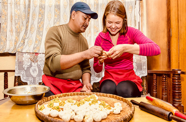 Le Népal est un creuset de cultures qui se reflète dans sa cuisine. Tout au long de votre voyage à travers la nation himalayenne, vous aurez l'occasion de déguster de somptueuses quantités de plats népalais. De l'authentique Newari aux cuisines inspirées des pays voisins, vous n'aurez que l'embarras du choix. Goûtez aux délices de n'importe quel restaurant de rue. Si vous voulez faire plus que vous régaler, vous pouvez aussi apprendre à préparer certains des plats typiques. Certaines familles proposent des cours de cuisine, le plus souvent gratuits. Apprenez à choisir les meilleurs ingrédients, à les mélanger correctement et à les cuisiner à la perfection. Il n'y a pas de meilleur moyen que la nourriture pour resserrer les liens familiaux.